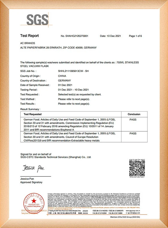 మాకు స్వతంత్ర పేటెంట్ కలిగిన స్టెయిన్లెస్ స్టీల్ థర్మోస్ కప్తో స్వతంత్ర పరిశోధన మరియు అభివృద్ధి బృందం ఉంది. ఫ్యాక్టరీ BSCI తనిఖీ మరియు ధృవీకరణను ఆమోదించింది.