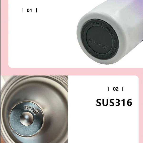 ఇది గడ్డితో వాక్యూమ్ ఇన్సులేటెడ్ స్టెయిన్లెస్ స్టీల్ బాటిల్, పదార్థం 316 స్టెయిన్లెస్ స్టీల్ (లోపలి భాగం) మరియు 201 స్టెయిన్లెస్ స్టీల్ (బయటి గోడ) తో తయారు చేయబడింది, సామర్థ్యం 500 ఎంఎల్.