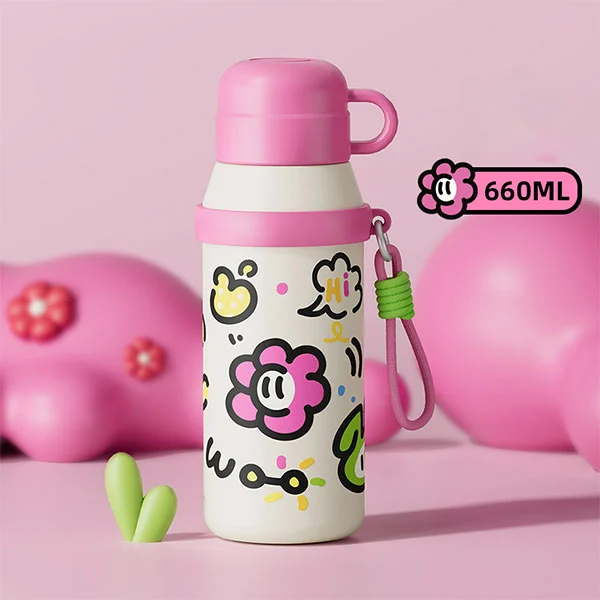 ఈ పిల్లల సామర్థ్యం స్టెయిన్లెస్ స్టీల్ కార్టూన్ వాటర్ బాటిల్ 660 ఎంఎల్.