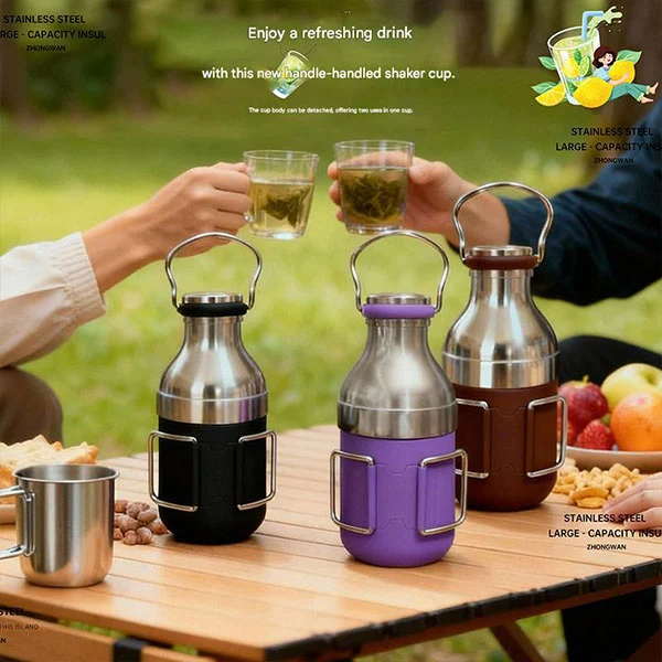 కుడికే యొక్క మన్నికైన అవుట్డోర్ డిటాచబుల్ ఇన్సులేటెడ్ బాటిల్ చాలా కూల్ థర్మోస్, మీరు ఎందుకు అలా అంటున్నారు? దాని ప్రత్యేకమైన డిజైన్ మరియు కార్యాచరణ కారణంగా, దీనిని రెండు కప్పులుగా విడదీయవచ్చు, అంటే మీరు థర్మోస్ను కొనుగోలు చేసినప్పుడు, బహుళ వ్యక్తులు దానిని కలిసి ఉపయోగించవచ్చు. ఇది హ్యాండిల్తో కూడా వస్తుంది, ఇది తీసుకువెళ్లడానికి చాలా సౌకర్యంగా ఉంటుంది. మా థర్మోస్ బాటిల్ మీ అద్భుతమైన జీవితంలోని అన్ని అంశాలను కలుస్తుందని నేను నమ్ముతున్నాను. అది క్యాంపింగ్, కమ్యూటింగ్, హైకింగ్ లేదా ట్రావెలింగ్ అయినా, మేము ఇన్సులేట్ చేయబడిన మరియు చల్లగా ఉండే కంటైనర్లను అందించగలము, పునర్వినియోగపరచలేని వ్యర్థాలను సమర్థవంతంగా తగ్గించవచ్చు.