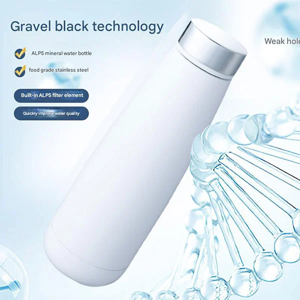 ఎందుకు నీరుఇన్సులేటెడ్ కప్పును శుద్ధి చేయడం? మేము మూతపై టీ నిల్వ ప్రాంతాన్ని రూపొందించాము మరియు దాని లోపల, మేము ప్రత్యేక పర్యావరణ అనుకూలమైన పదార్థాలను - ఆల్ప్స్ ఖనిజ కణాలు ఉంచాము. ఆల్ప్స్ కణాలలో అల్యూమినియం, మెగ్నీషియం, ఇనుము, సోడియం మరియు పొటాషియం వంటి అంశాలు సమృద్ధిగా ఉంటాయి. ఈ అంశాలు ఆరోగ్యానికి ప్రయోజనకరంగా ఉంటాయి మరియు నీటి ఆమ్లత్వం మరియు క్షారతను మెరుగుపరుస్తాయి. మీరు నీరు త్రాగినప్పుడు, నీరు శుద్దీకరణ కోసం ఈ కణాల గుండా వెళుతుంది, కొద్దిగా ఆల్కలీన్ అవుతుంది. ఇది మీ తాగునీటిని సురక్షితంగా చేస్తుంది.