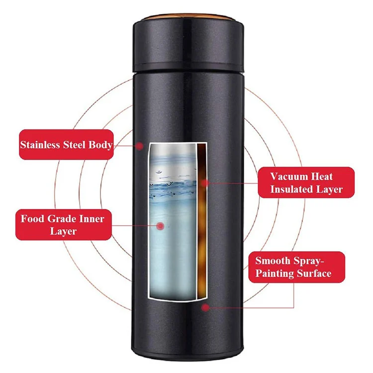 - వాక్యూమ్ ఫ్లాస్క్ అధిక నాణ్యత గల ఫుడ్ గ్రేడ్ 18/8 స్టెయిన్లెస్ స్టీల్, తుప్పు మరియు ఆక్సీకరణ నిరోధకత మరియు తుప్పు నష్టంతో తయారు చేయబడింది. ప్లాస్టిక్ కప్పుల కంటే BPA రహిత, సురక్షితమైన, ఆరోగ్యకరమైన మరియు పునర్వినియోగపరచదగినది.